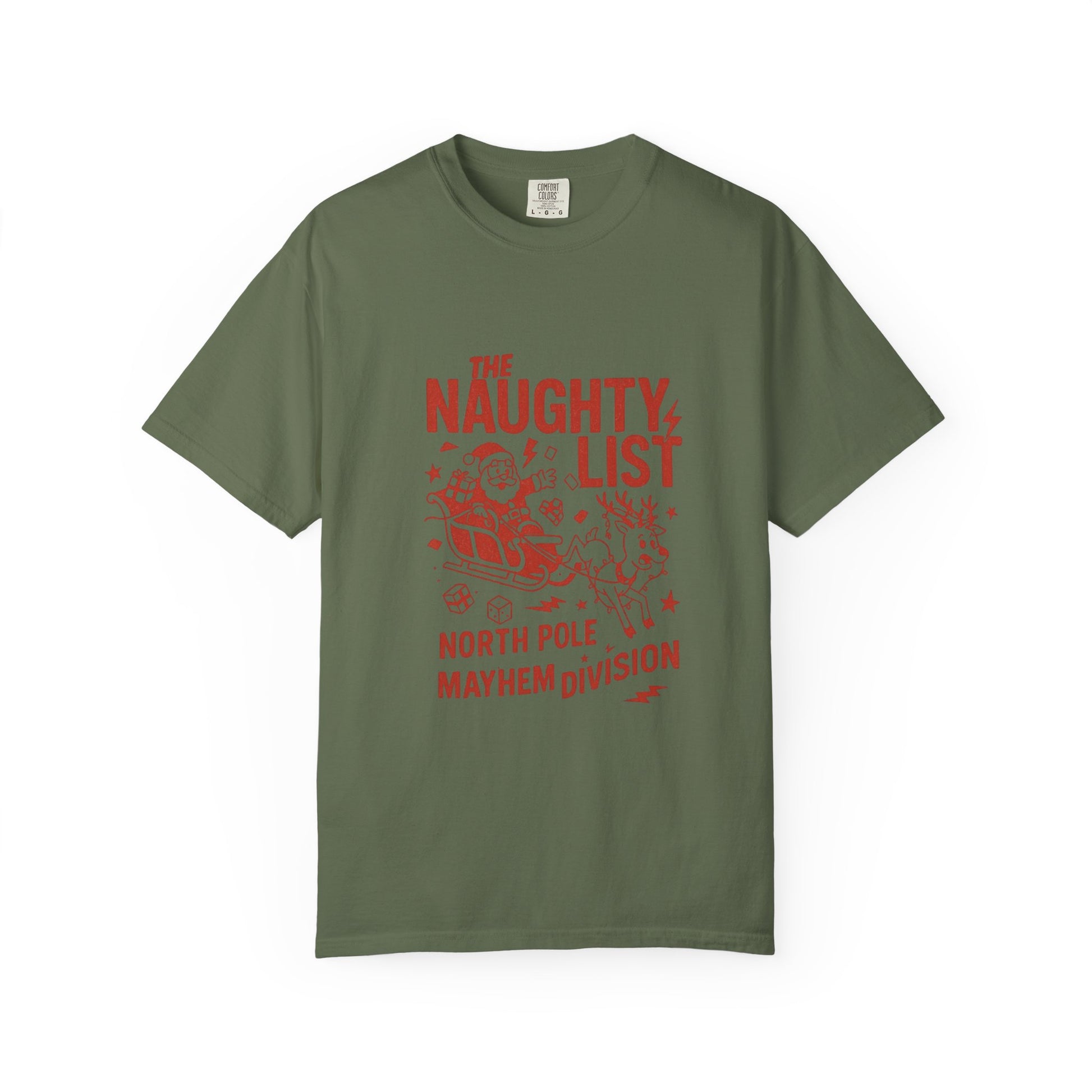 Dont be on the naughty list! Embrace the holiday spirit with this charming unisex garment-dyed T-shirt, perfect for festive gatherings or cozy family celebrations. Crafted from 100% ring-spun US cotton, it offers a relaxed fit that combines comfort and style. The unique garment-dyed fabric creates a soft texture and vibrant colors, making it a go-to choice for both everyday wear and special occasions. With an appealing design that captures the whimsical elements of the holiday season, this T-shirt is ideal for anyone looking to spread joy and laughter during festivities. Perfect for Christmas parties, holiday gift exchanges, or just lounging at home, it’s a delightful addition to any wardrobe that resonates with fun lovers, family gatherings, and holiday cheer. Product features - Available in sizes S to 4XL for a perfect fit - Durable double-needle stitching ensures longevity - Tubular knit construction reduces fabric waste and enhances style - Garment-dyed for a unique, soft color and feel - Made from 100% ring-spun US cotton for ultimate comfort Care instructions - Machine wash: cold (max 30C or 90F) - Do not bleach - Tumble dry: low heat - Iron, steam or dry: low heat - Do not dryclean